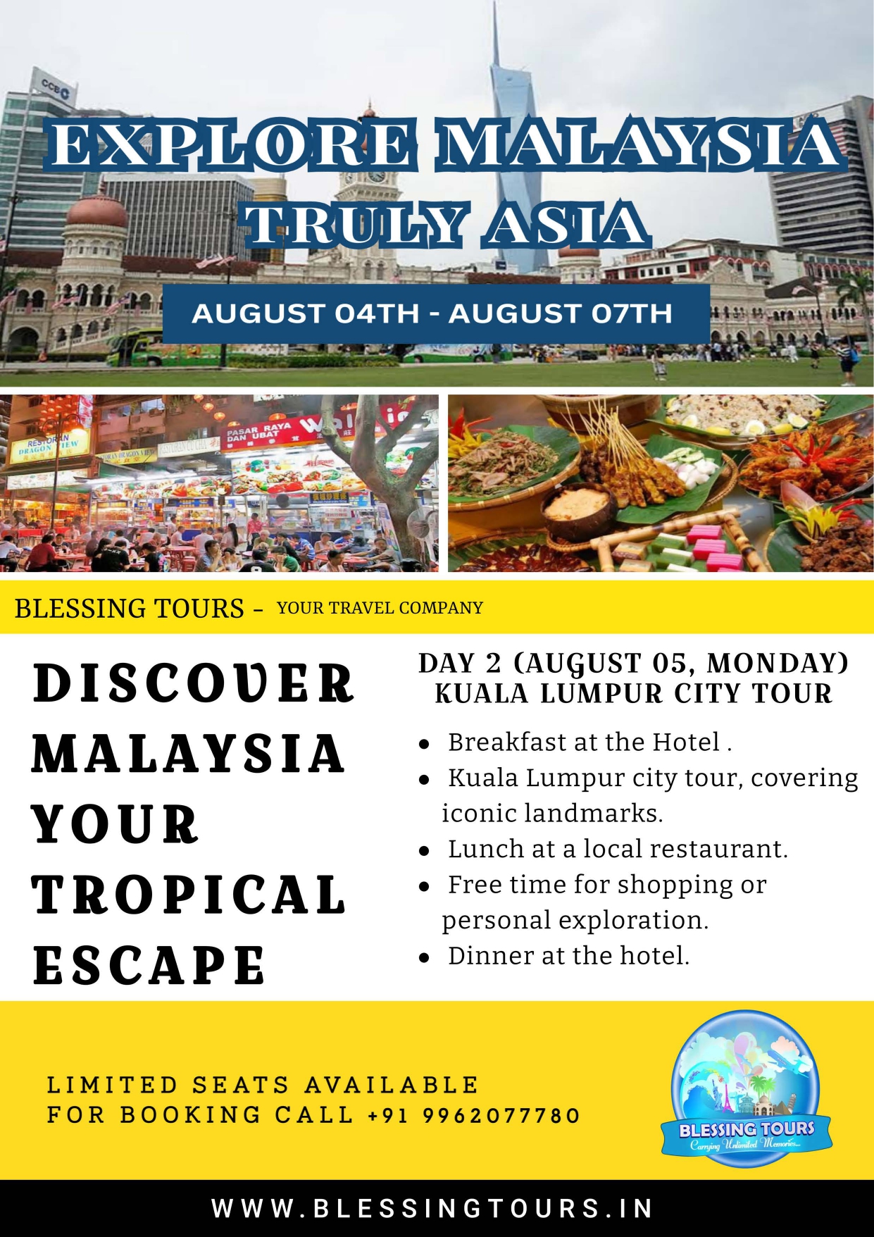 Experience the best of Asia in Malaysia, where vibrant cities, stunning beaches, and ancient rainforests meet. Discover the country's rich culture, savor delicious cuisine, and enjoy the warm hospitality of the Malaysian people. From Kuala Lumpur to Penang, Langkawi, and beyond, Malaysia is a treasure trove of experiences waiting to be explored.